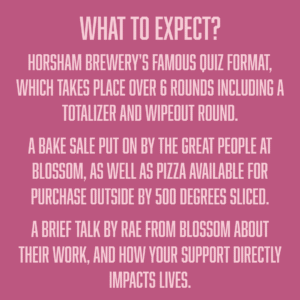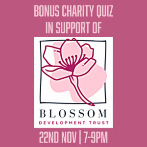 The quiz is open to everyone, and the proceeds go directly to Blossom. You can take part in teams of 2-4, each player must have a ticket.
